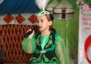 Аудандық саз мектебінің эстрадалық вокал сыныбының оқушысы Айлин Биболат «Анамның тілі» әнін шырқап біткенше, тақиялар мен жастық дайын болып, форумның қонақтарына және мектеп ұжымына сыйға тартылды.