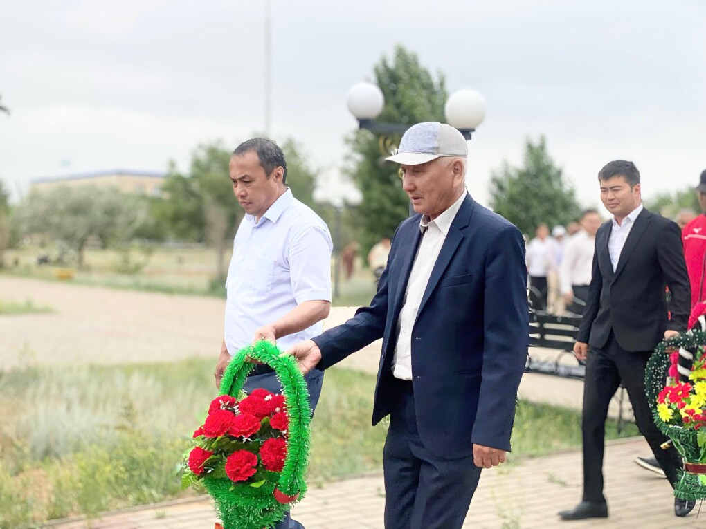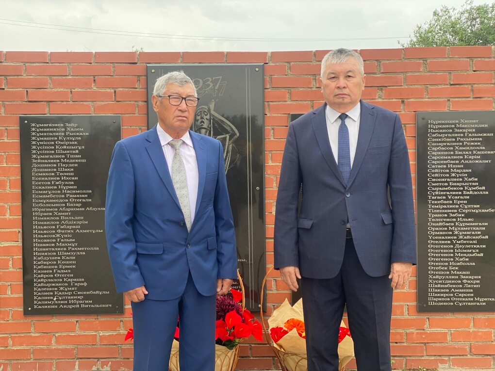 Бір минут үнсіздіктен кейін аудандық мәслихат төрағасы Лариса Қайырғалиева мен аудандық ардагерлер кеңесінің төрағасы Тілеген Арыстанбеков, аудандық қоғамдық кеңес төрағасы Қуаныш Елемесов пен еңбек ардагері Жасқайрат Сұлтанғалиевтер бастаған қауым ескерткіштерге гүлшоқтарын қойып, қолдан жасалған қасірет құрбандарының рухына тағзым етті.