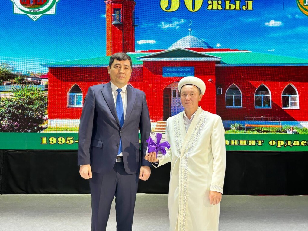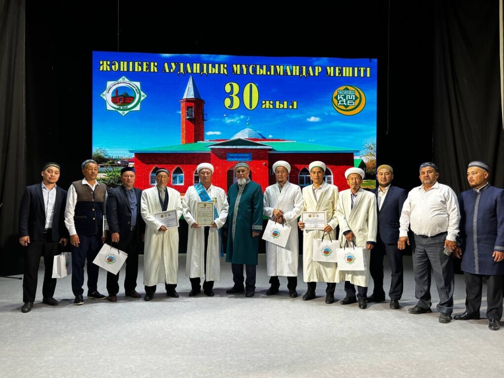 Алғы сөзін алған аудан басшысы Тимур Шиниязов: «Халықтың мақтанышына айналған, бабалардың сара жолын жалғайтын имандылықтың мекені аудандық мештіміздің қызмет жасағанына 30 жыл толып отыр. Атаулы датамен күллі мұсылман жамағатын шын жүрегіммен құттықтаймын! Елімізді амандығынан, жұртымызды тыныштығынан айырмасын!»,- деп, ниет білдіріп, мешіт құрылысына атсалысқан және мешіт жұмысына демеуші боп жүрген азаматтарға өз атынан алғысхатын берсе, 30 жылдық мерекеге орай естелік сыйлық ретінде сауат ашу орталығына теледидар табыс етті.