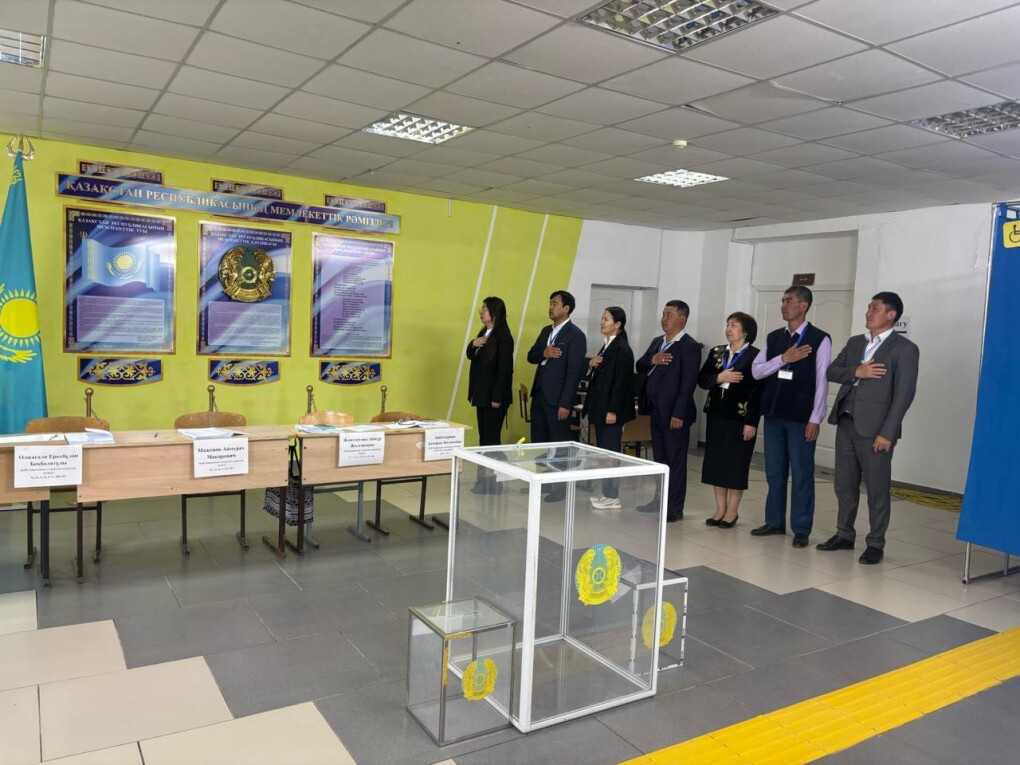 №281 Қарақамыс сайлау учаскесінде дауыс беру таңғы сағат 7-де басталып, мемлекеттік гимн орындалды.