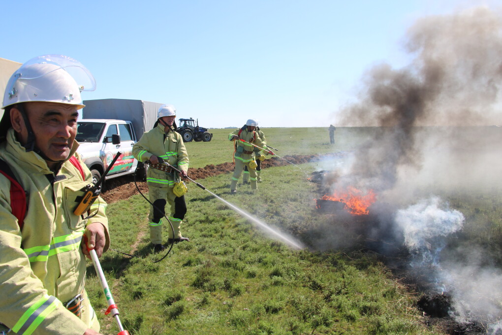Тілсіз жау бағыт алған алаңды арнайы өрт сөндіру мамандары өртті дер кезінде ауыздықтады. Көзді ашып-жұмғанша сақадай сай техника апаттың алдын алды. Барлығы шынайы түрде болды. Оқу-жаттығу ойдағыдай өтіп, арнайы құрылымдардың қауіпті кезеңге дайын екендерін тағы да бір мәрте дәлелдеді.