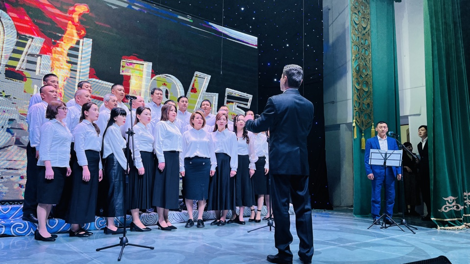 Сахна шымылдығын жеке дауыста Абат Бақтыгереевпен мекеме қызметкерлерінен құралған хор ұжымы «Бейбіт күн тілегі» (дирижер Өтеген Шоқпанов) әнімен ашты. Аудандық ветеринария бөлімінің қызметкері Абат Бақтыгереев «Қазақстан» әнін орындап, көрерменнің ыстық ықыласына бөленді.