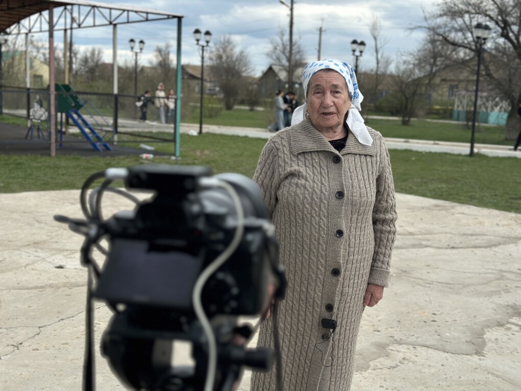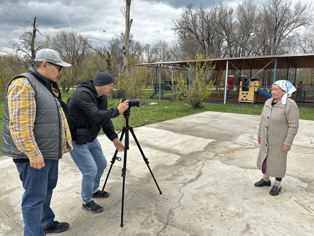 Түсірілім тобы Жәнібекке Бөкей ордасының Сайхын мен Шоңғай ауылдарынан келді. Алдымен олар аудан орталығында тұратын, М.Мәметованың туысы Анаргүл Ахмулдинамен тілдесті.