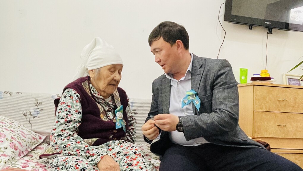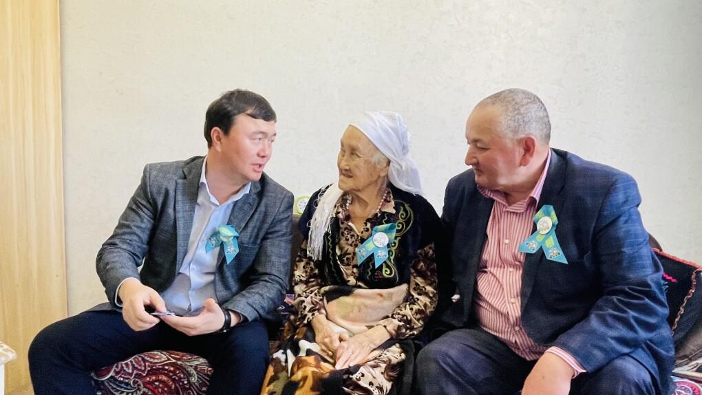 Шаңырақтарына барып, мемлекеттік награда тапсырған аудан әкімі Жұмагелді Батырниязов қарттарға деннің саулығын, ұрпақтың қызығын тіледі.