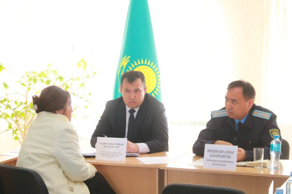 - Сыбайлас жемқорлыққа қарсы мобильді топ өткен жылы барлық ауданды, ондағы ірі елді мекендерді аралап шықты. Биылғы жылдың бірінші тоқсанда 5 ауданда қабылдау өткіздік. Екінші тоқсан басталғалы Теректі ауданында болдық, енді Бәйтерекке келіп отырмыз.