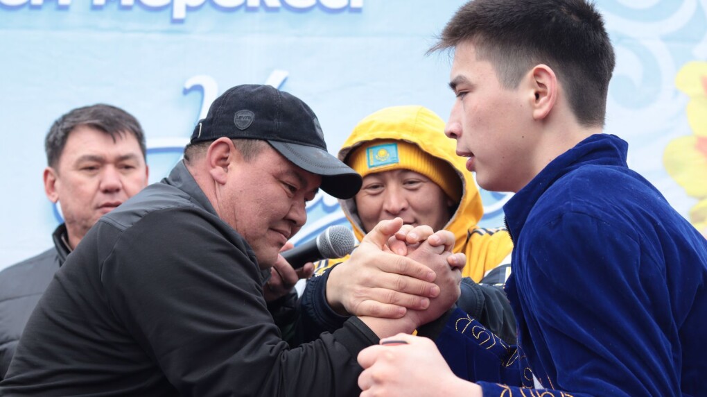 Көпшілік арасынан шыққан білекті жігіттер қол күресте күш сынасты. Қанша қарсыласты қирата жеңген әкелі-балалы Илияс пен Дияс Сатқановтар соңында жекпе-жекке келді. Алайда баласы әкесіне жол беріп өзі екінші орынды иеленді. Бұл тұсты отбасылық құрмет пен сыйластықтың тамаша көрінісі деп қабыл алды барша көпшілік.
