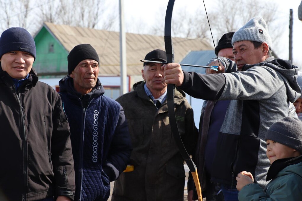 Мереке соңында жігіттер садақ тартып, көпшілік естелік суретке түсті.