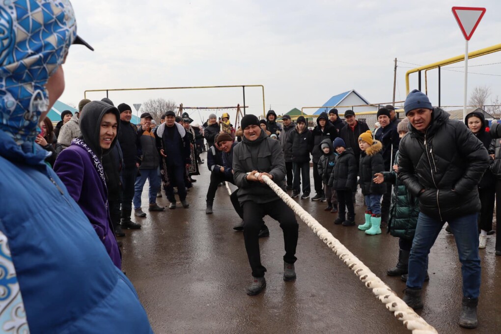 «-Ел аман, жеріміз бүтін болсын! Тойымыз көп, уайым жоқ болсын. Алдағы жылдарға да аман жетейік» деген тілегін төккен ағайын арқан тартысы, қыздар арасындағы қол күрес, жігіттердің гір тасын көтеру қызықтарын тамашалады.