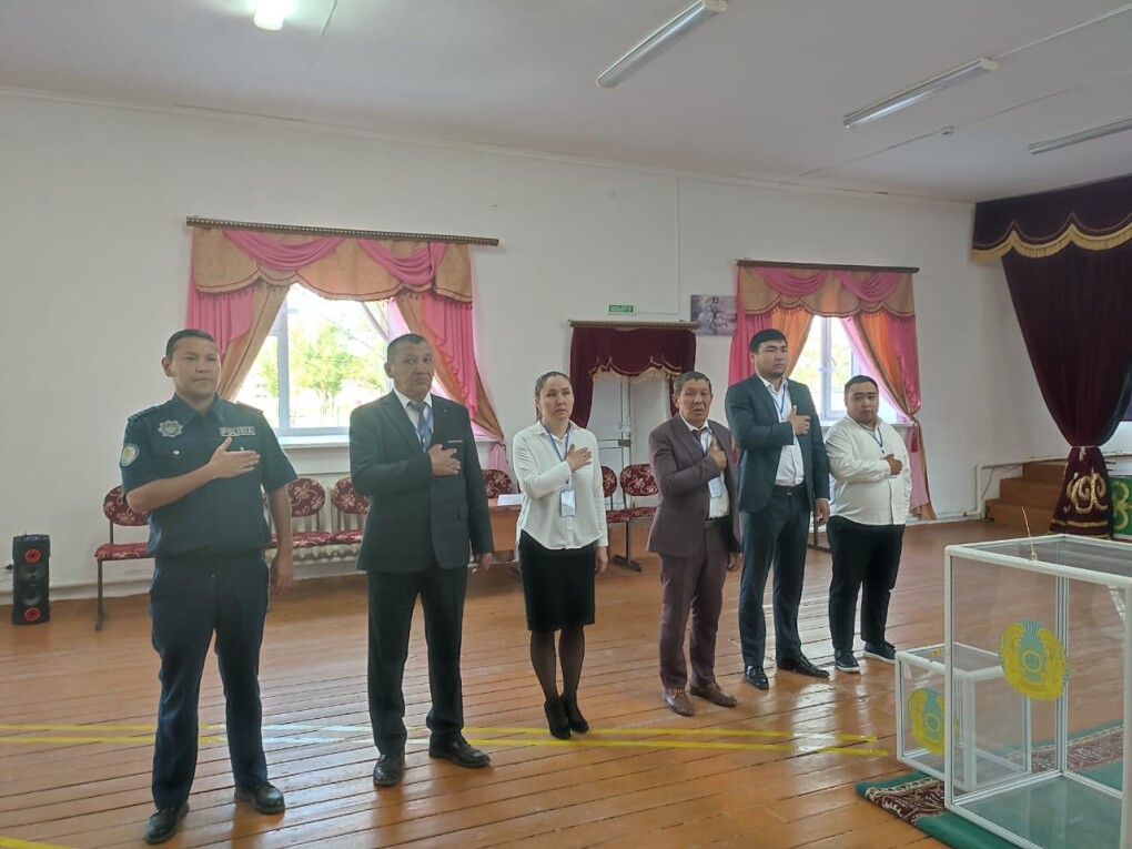Бүгін Сарой ауылдық округіндегі №302 сайлау учаскесі өз жұмысын бастады.Таңғы сағат 7:00-де Қазақстан Республикасының Мемлекеттік Гимн шырқалып, сайлаушыларға есік ашылды.