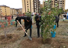 Аким ЗКО, учителя и ученики школы высадили молодые саженцы во дворе школы.