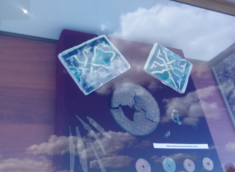 В числе артефактов городища – изразцы из малого и большого мавзолеев, оформленных наподобие культовых мест Туркестана. Изразцы украшены узорчатой синей глазурью из кобальта, который добывался из органических соединений. По словам Яны Лукпановой, зеркало было найдено в одном из погребений, ученые предполагают, что это китайский импорт, так как в Поволжье, Приуралье, Европе такие зеркала неизвестны. Стеклянные бусы производились везде, теоретически их могли изготовить и здесь, и в Сарайчике, и в Европе. Сохранились прясла, которые до сих пор есть и у некоторых наших бабушек. С их помощью делали шерстяные нити. Очень интересно синее прясло – его сделали из осколка изразца.