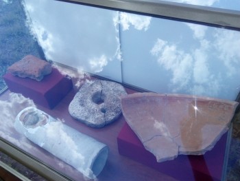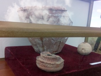 Очень много было найдено хумов (на снимке представлены черепки). Это высокие сосуды в человеческий рост, внизу в них прокалывали отверстие. Хумы устанавливались в погребах, с зимы в них закладывался лед, а на него клалось свежее мясо. Когда лед потихоньку таял, вода через отверстия вытекала наружу, а мясо всегда оставалось свежим и пригодным в пищу. Это был аналог современной морозильной камеры. Были хумы для сыпучих продуктов, они отличались рельефными орнаментами. Так как в погребе было темно, человек по орнаменту на ощупь мог опознать хум и определить, что за продукт в нем хранится.