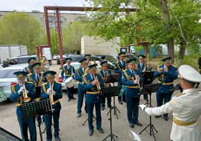 В Уральске военный оркестр воинской части 5517 РгК "Батыс" Национальной гвардии исполнил композиции военных лет под окнами домов двух ветеранов Великой Отечественной войны Гапича Ивана Степановича и Митрохиной Алевтины Тимофеевны.