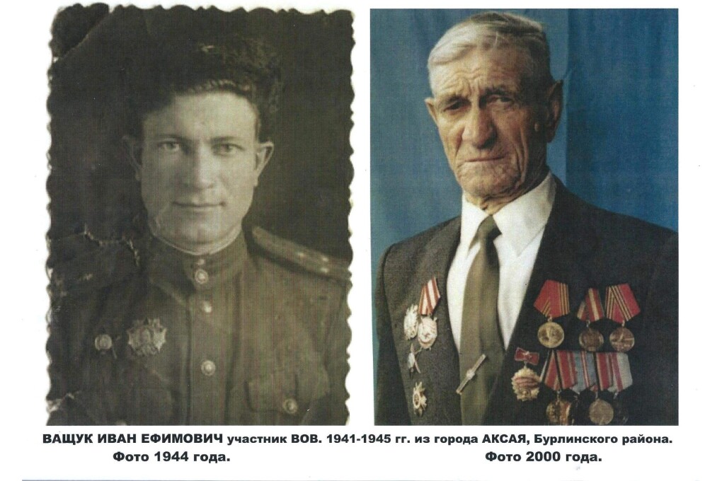 В городе Аксай 4 улицы носят имена ветеранов Великой Отечественной войны. Их имена увековечены в память о подвиге народа, который устоял перед натиском безжалостного и беспринципного врага и одержал верх в кровопролитных боях. Сегодня расскажем о участнике освобождения городов Старой Руссы, Риги, Смоленска, Дна, Волхова, Восточной Пруссии, участнике штурма города-крепости Кёнигсберг Иване Ефимовиче Ващуке. Он был трижды ранен, но судьба благоволила к нему – солдат вернулся домой живым и прожил яркую жизнь, работая на благо Родины.